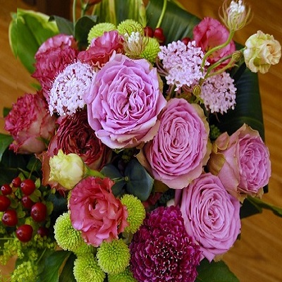 使用花:薔薇、トルコキキョウ、実、マム、他